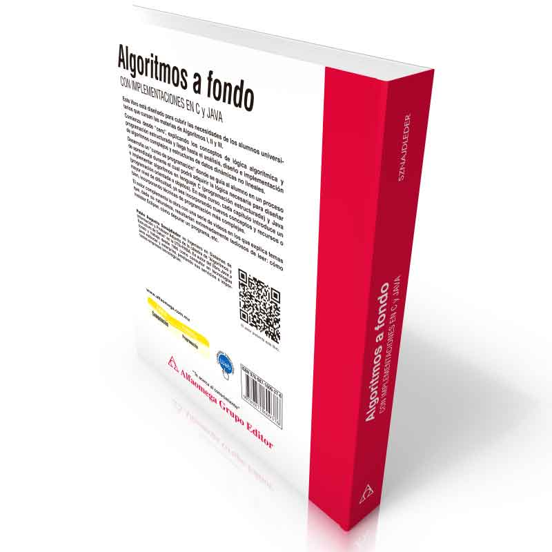 Este libro está diseñado para cubrir las necesidades de los alumnos universitarios que cursan las materias de Algoritmos I, II y III. Comienza desde cero, explicando los conceptos de lógica algorítmica y programación estructurada y llega hasta el análisis, diseño e implementación de algoritmos complejos y estructuras de datos dinámicas no lineales.