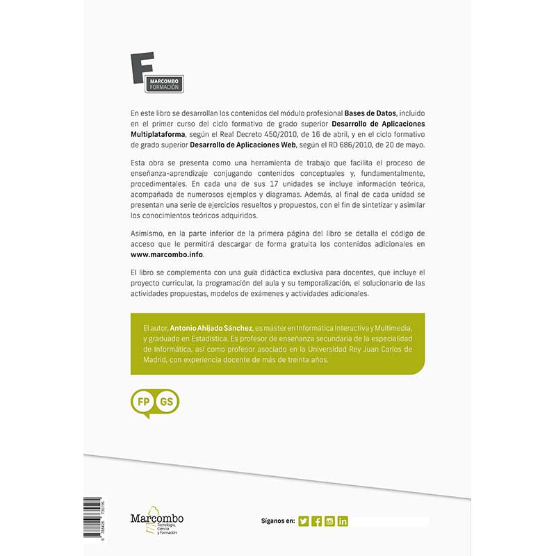 En este libro se desarrollan los contenidos del módulo profesional Bases de Datos, incluido en el primer curso del ciclo formativo de grado superior Desarrollo de Aplicaciones Multiplataforma, según el Real Decreto 450/2010, de 16 de abril, y en el ciclo formativo de grado superior Desarrollo de Aplicaciones Web, según el RD 686/2010, de 20 de mayo.