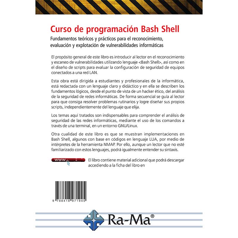 Esta obra está dirigida a estudiantes y profesionales de la informática, está redactada con un lenguaje claro y didáctico y en ella se describen los fundamentos lógicos, desde el punto de vista de un hacker ético, del análisis de la seguridad de redes informáticas. De forma secuencial se guía al lector para que consiga resolver problemas rutinarios y logre diseñar sus propios scripts, independientemente del lenguaje que elija.