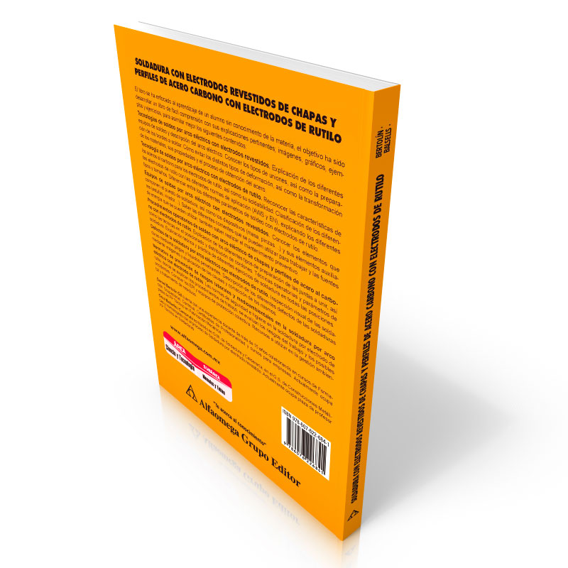 Este libro está diseñado para el aprendizaje de alumnos sin conocimiento en la materia, el objetivo ha sido desarrollar un libro de fácil comprensión con sus explicaciones pertinentes; imágenes, gráficos, ejemplos y ejercicios, para asimilar mejor temas como: tecnologías de soldeo por arco eléctrico con electrodos revestidos, tecnologías de soldeo por arco eléctrico con electrodos de rutilo, equipos de soldeo por arco eléctrico con electrodos revestidos, procedimientos operatorios de soldeo con arco eléctrico de chapas y perfiles de acero al carbono con electrodos de rutilo, defectos de la soldadura por arco eléctrico con electrodos de rutilo, normativa de prevención de riesgos laborales y medioambientales en la soldadura por arco eléctrico con electrodo de rutilo.
