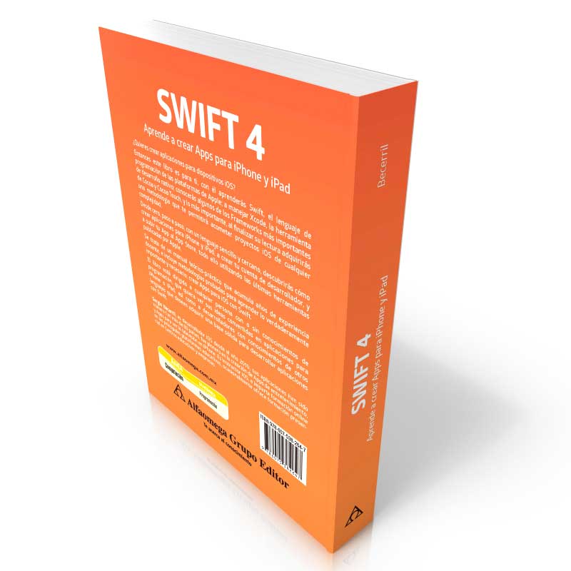 El presente texto es una exposición completa de las herramientas necesarias para crear aplicaciones con Swift versión 4 para iPhone y iPad partiendo desde cero, pero en donde cada capítulo puede estudiarse de manera independiente de los demás; es decir, el lector no necesita tener conocimientos previos de programación o lenguajes de programación, ya que la metodología explicada para la creación de aplicaciones consiste en adquirir hábitos y conocer trucos que faciliten el aprendizaje. Por otro lado, quienes ya han hecho aplicaciones pueden empezar su lectura a partir del quinto capítulo, pues es en éste en donde se aborda el nuevo lenguaje de programación Apple Swift versión 4; asimismo, les puede ser útil como consulta de casos prácticos. El libro está dividido en dos partes, la primera (que comprende los capítulos del 1 al 8) está conformada por la teoría, en donde se estudian los fundamentos y la metodología; la segunda parte muestra cómo llevar a la práctica lo aprendido en los primeros apartados, aunque también se explican los conceptos que servirán de base para realizar dicha práctica. Todo el contenido de estas páginas está sustentado en la experiencia del autor, probada en cientos de estudiantes a lo largo de varios años.